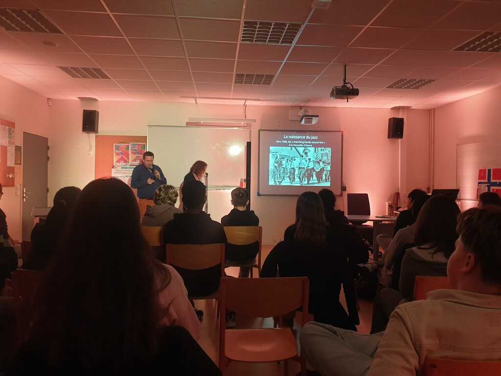 Chaque classe de 4ème a ainsi assisté à une conférence d’une durée de deux heures. Au fil de la séance, les artistes ont proposé un véritable voyage à travers l’histoire de la musique afro-américaine, en montrant à quel point celle-ci est intimement liée à l’histoire de l’esclavage.