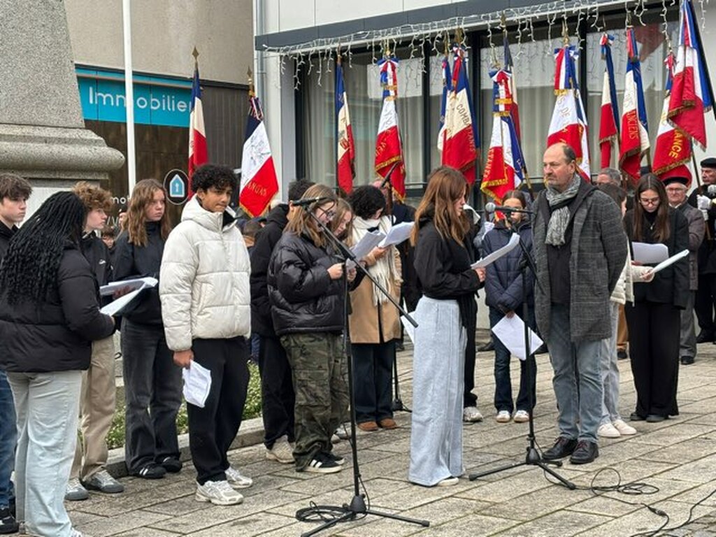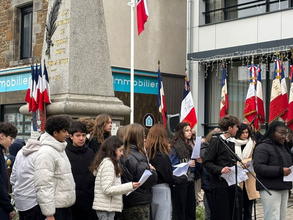 Une centaine d’anciens combattants, de Citoyens de la Paix (association engagée dans la transmission des valeurs de paix, de solidarité et de devoir de mémoire) ainsi que des officiels étaient réunis sur le parvis de la mairie, devant le monument aux morts, aux côtés d’une centaine d’enfants des écoles et du collège de Romillé.